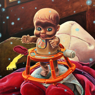 Sebastian Weissenbachers Themen sind der Totalitätsanspruch von Kitsch und die Hinterfragung von Wirklichkeit. Nippesfiguren, Verniedlichungen, Inhalte von Überraschungseiern, Spielzeug (all die kleinen Dinge, die im Kinderzimmer bestenfalls als Hintergrundgeräusch wahrgenommen werden), Mehlspeisen, Verpackungsmaterial, Werbung, Comics, kurzum alle Hervorbringungen der Trivialkultur sind Auslöser seiner Bildfindungen.